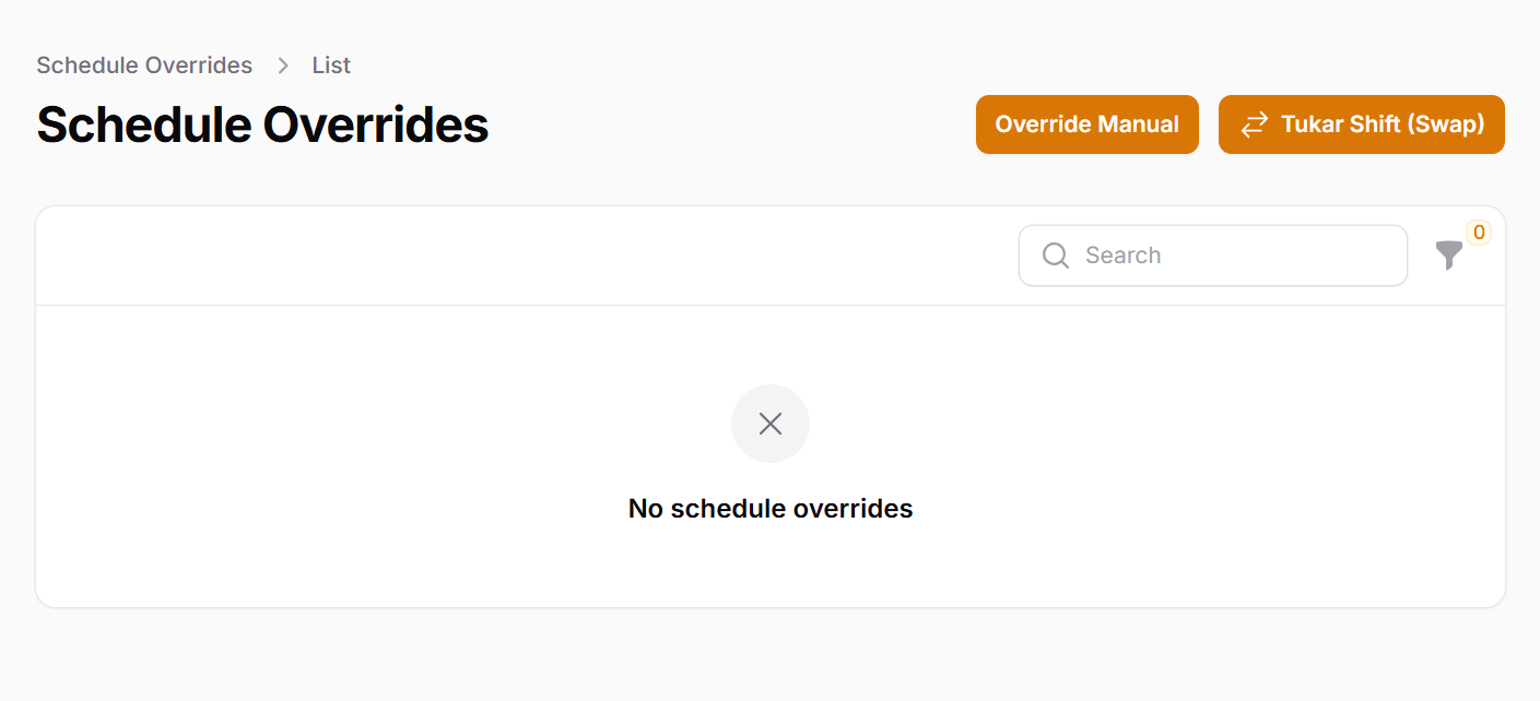 Fitur Schedule Overrides berfungsi untuk "menimpa" jadwal asli karyawan HANYA pada tanggal yang ditentukan, tanpa merusak atau mengubah pola jadwal utama mereka.